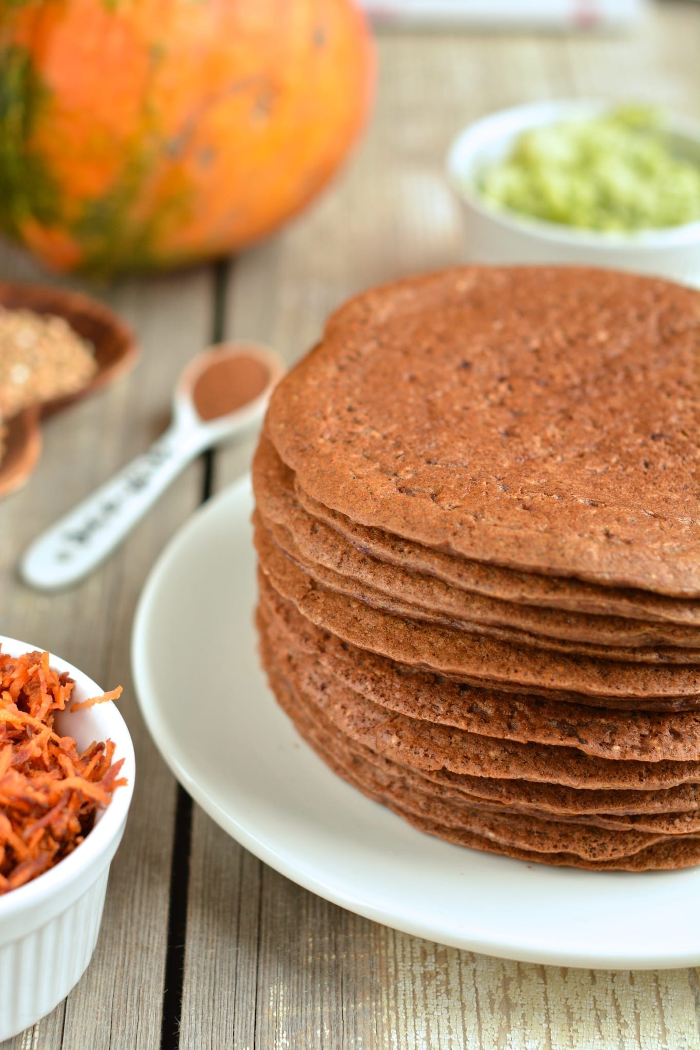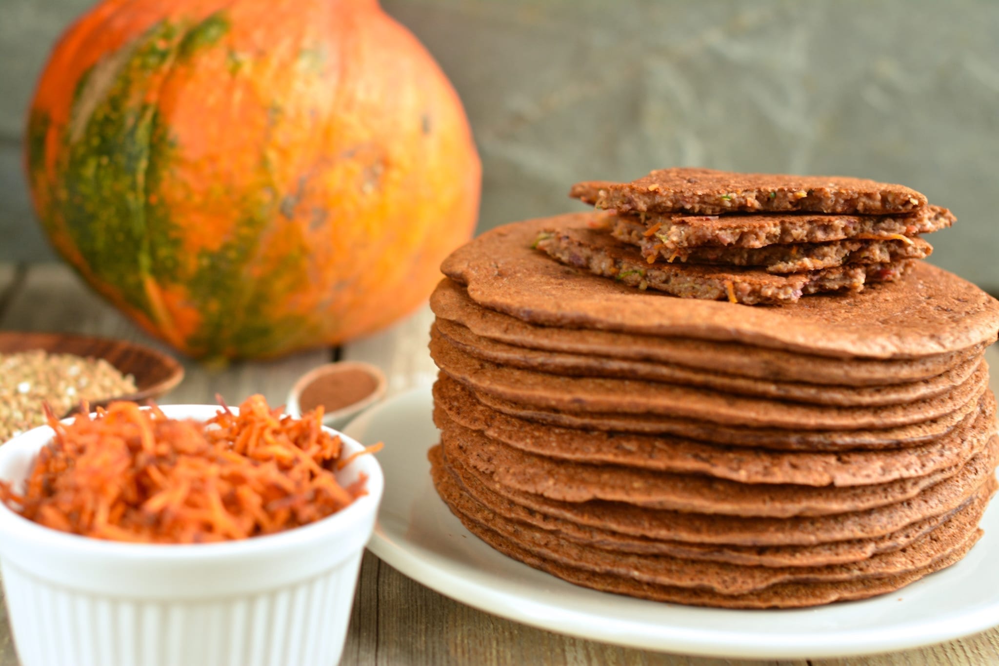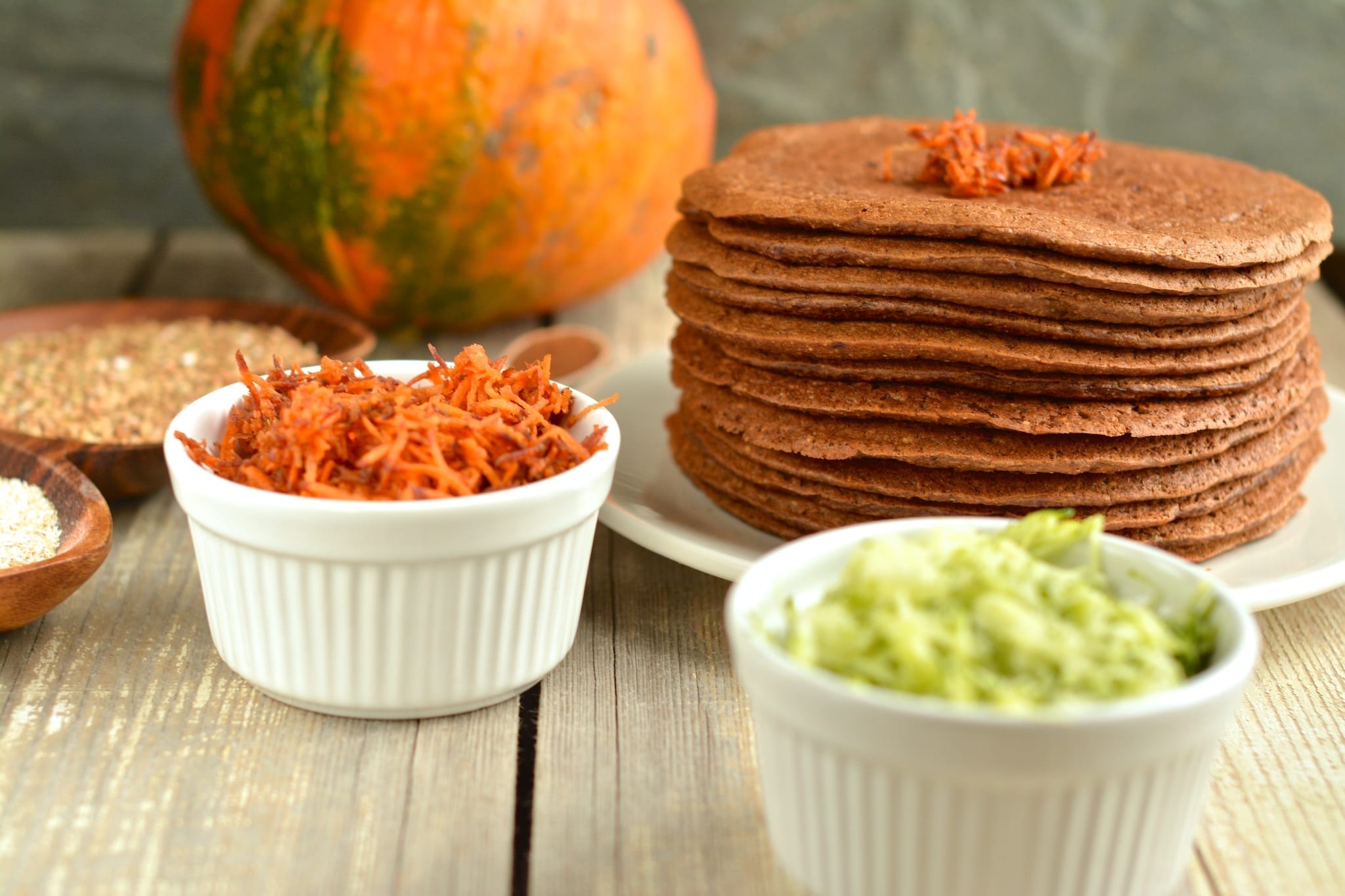 Buckwheat-Oat Bran Pancakes with Grated Veggies |14-15 pancakes|