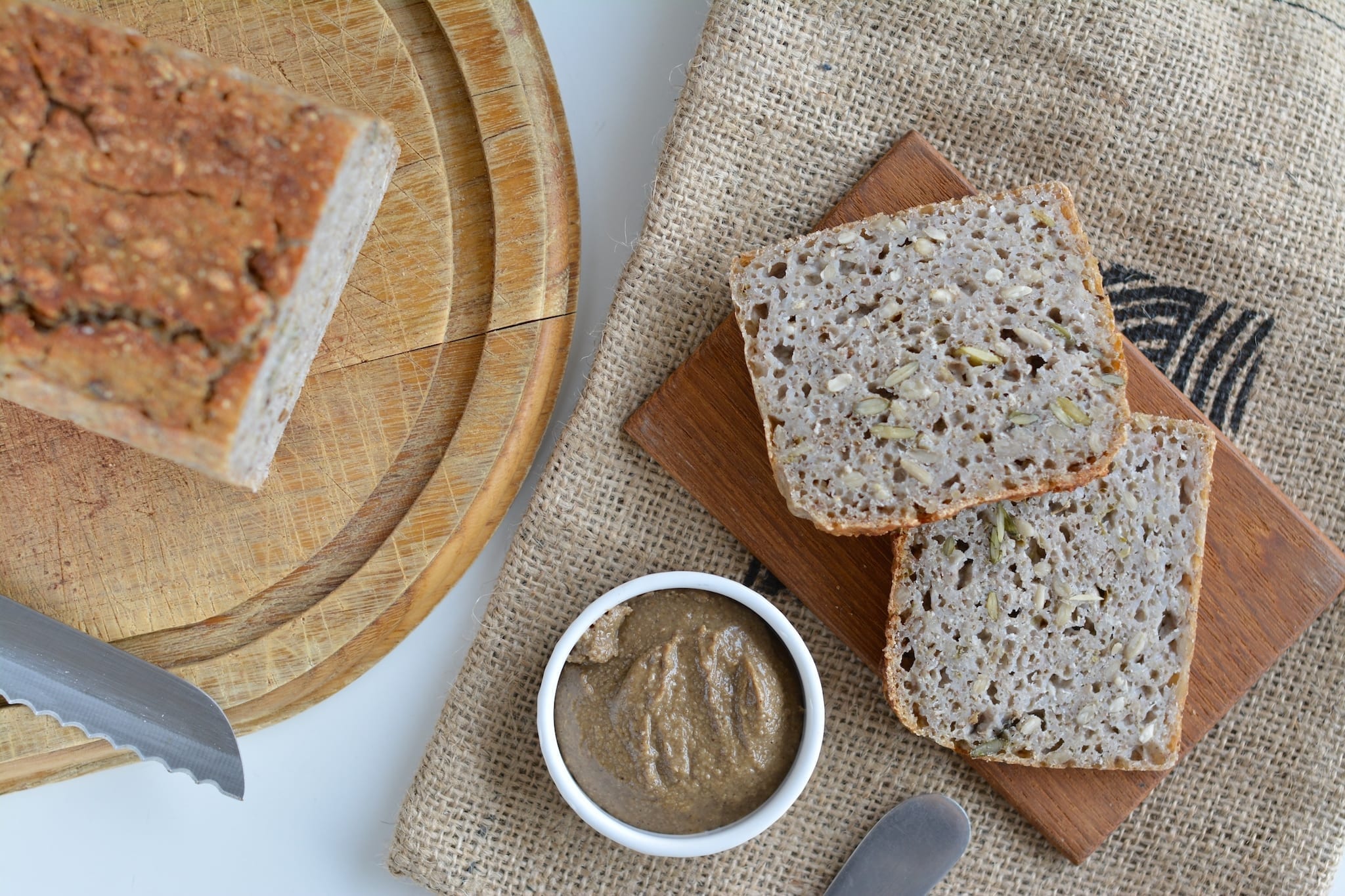 Pan de trigo sarraceno fermentado sin iniciador, sin harina, sin levadura y sin gluten.